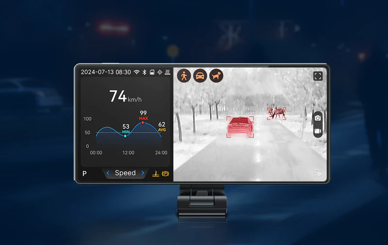 This compact thermal vision camera mounts easily on your vehicle, helping you spot hazards in total darkness, heavy smog, or blinding high beams. Drive safer with clear thermal imaging that reveals what your eyes can’t.